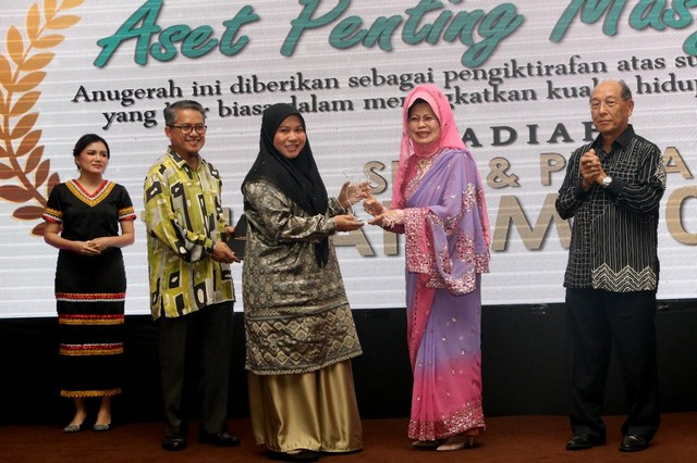 Anugerah Individu Cemerlang pula telahdimenangi oleh Penolong Pustakawan, Perpustakaan Desa Kampung Hulu Maludam, Puan Saadiah Maliki.