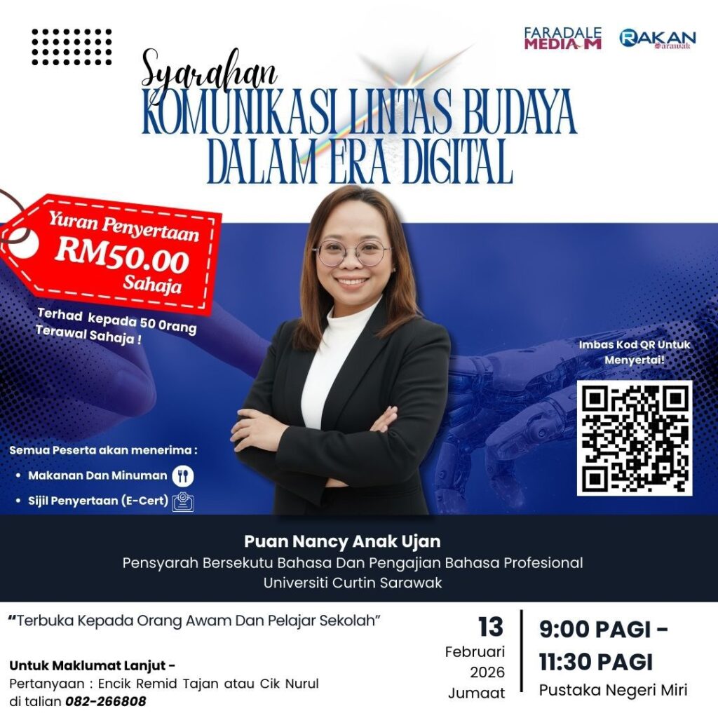 Mari sertai Syarahan Bahasa anjuran Faradale Media-M dan tingkatkan keupayaan komunikasi anda dalam era digital yang serba mencabar.
